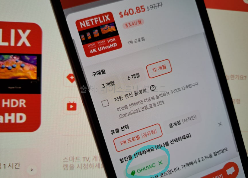 4) 원하시는 네플릭스 요금제를 선택하신 후 이용 기간을 설정하시면 됩니다.